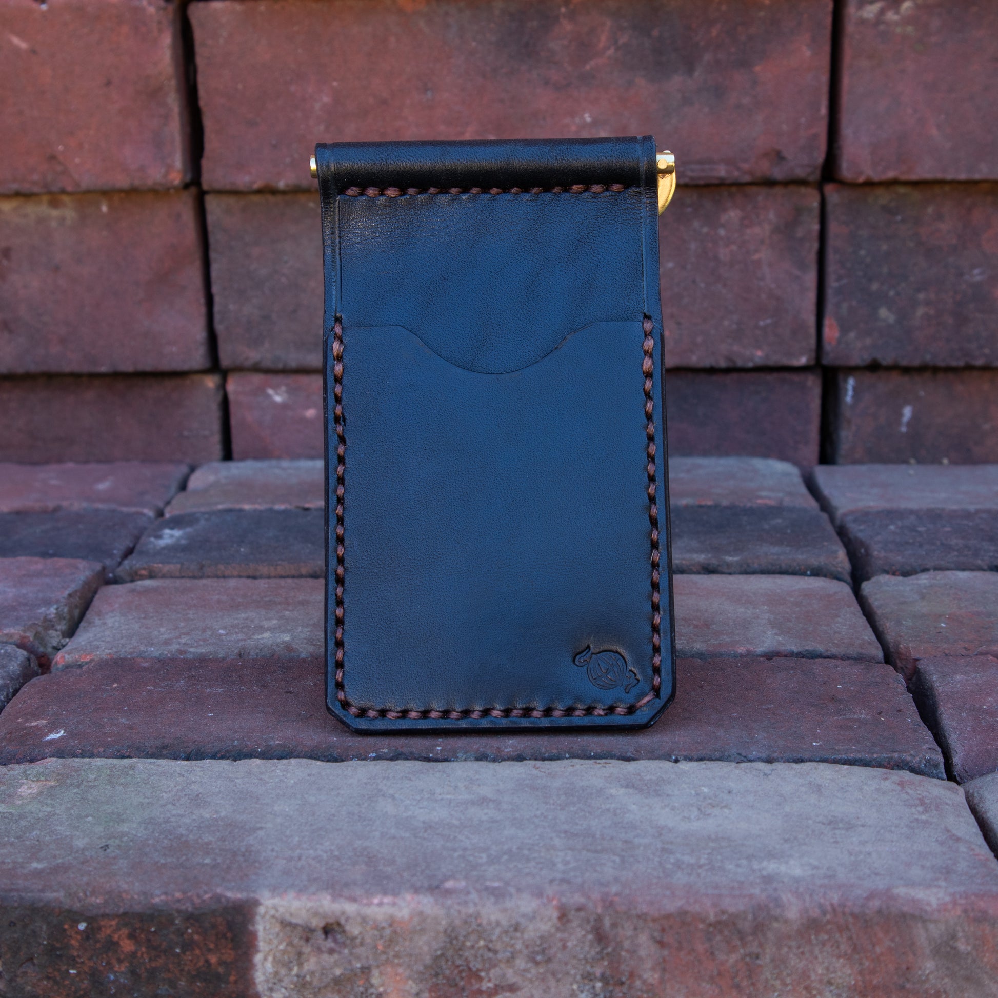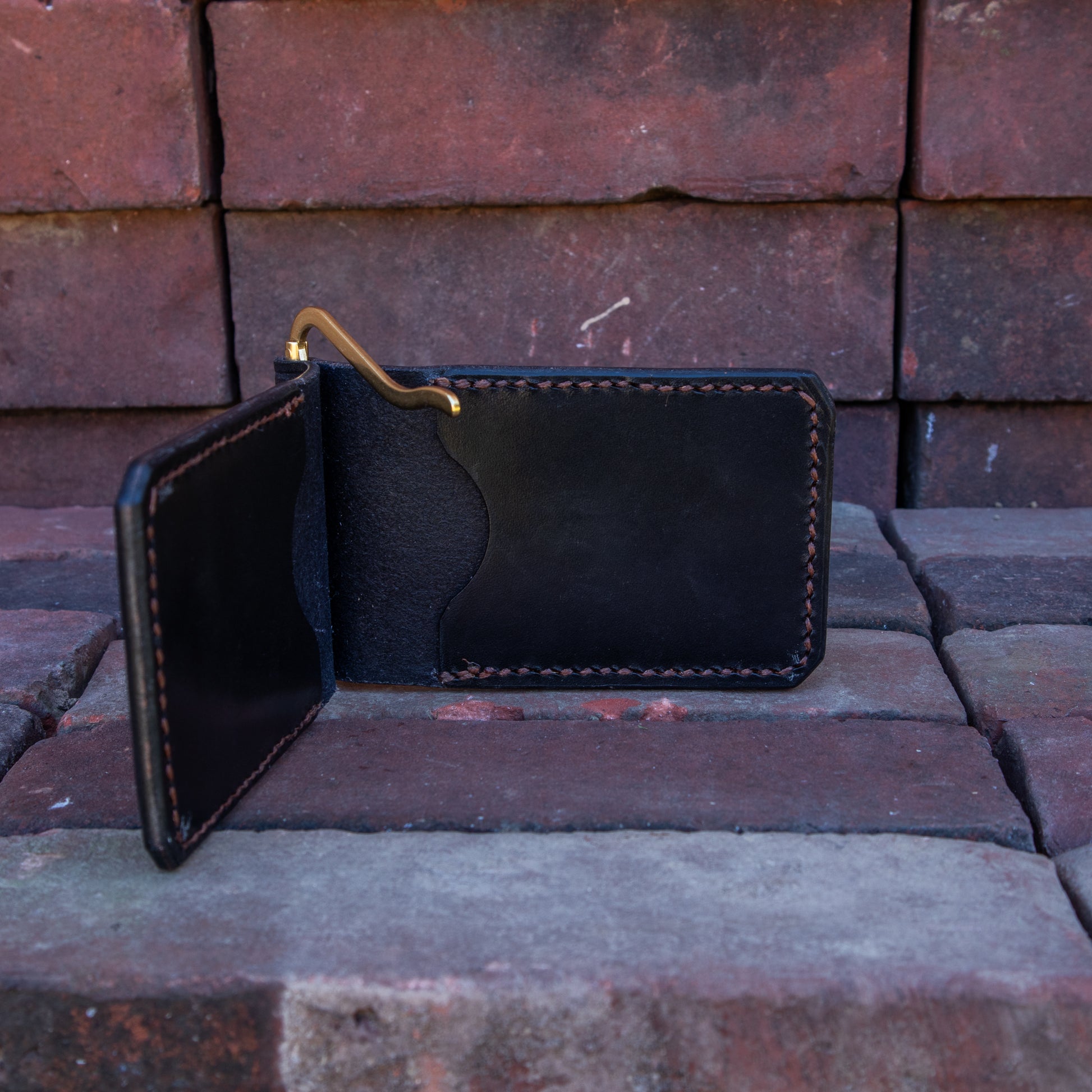 The "Cash Flyer" presents a quick, fumble free way to release only the bills you need. Simply grab onto the bill(or bills) and release them from the attached brass money clip. The Flyer also comes equipped with two outer speed pockets for your go to cards and 2 hidden pockets that lay beneath your beloved cash.